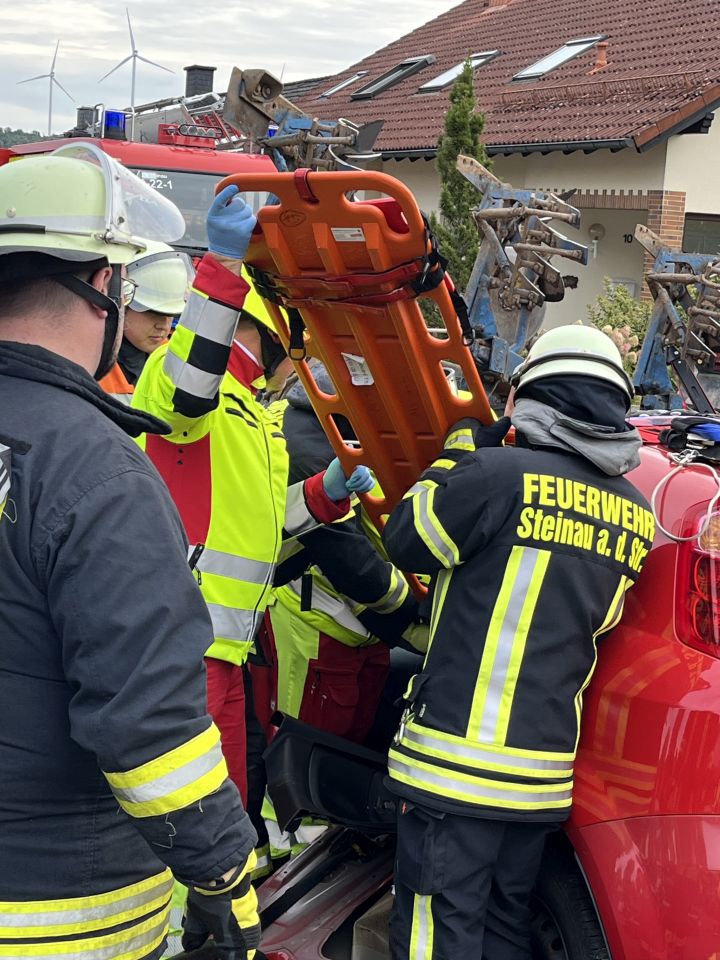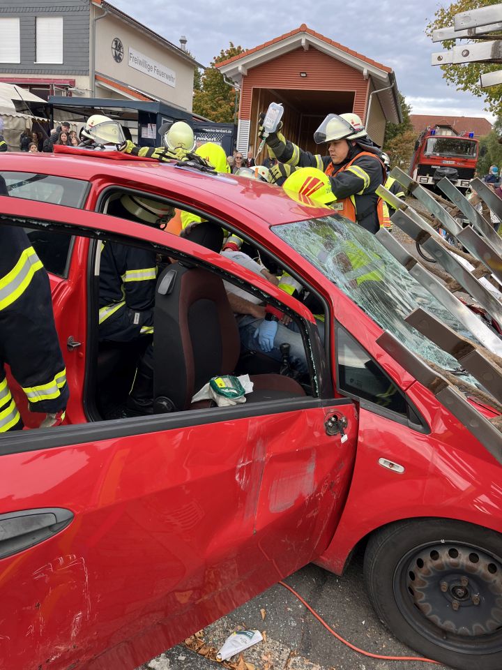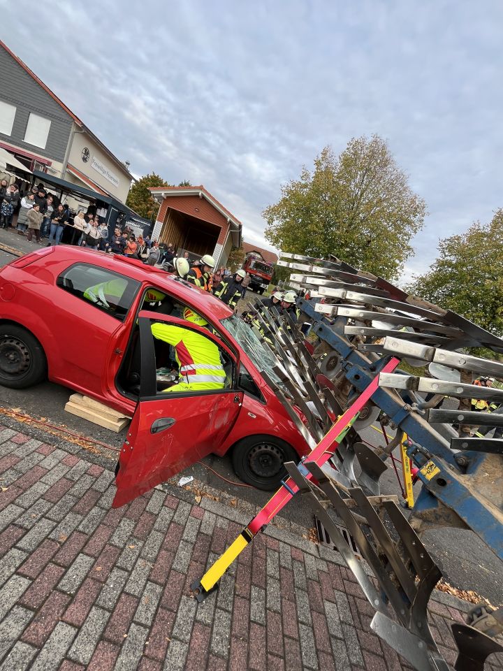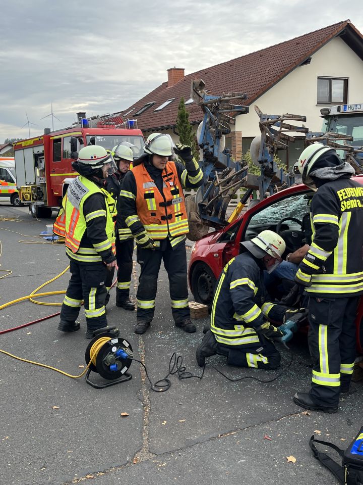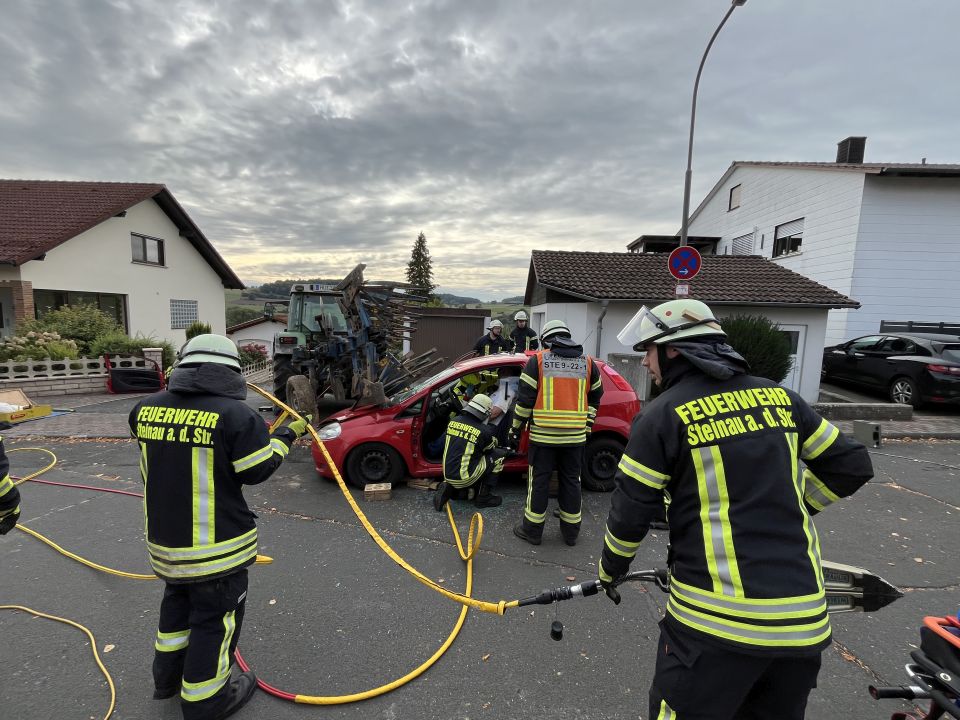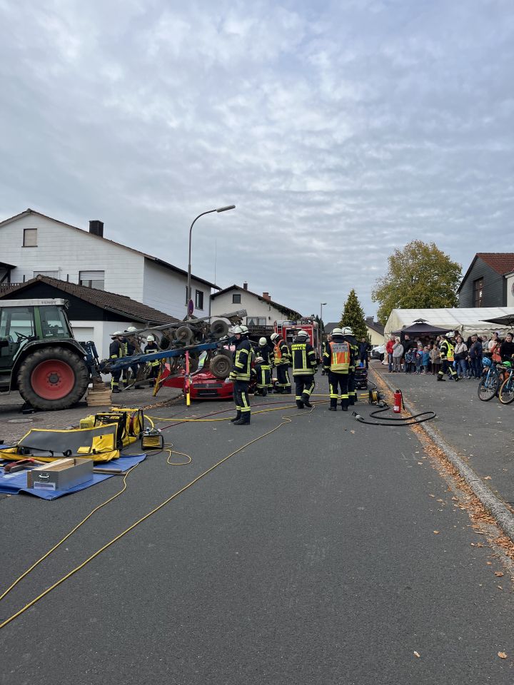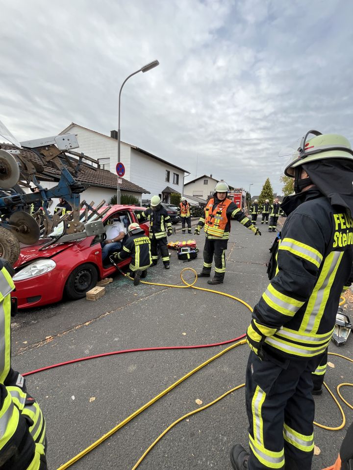 Die Feuerwehr Hintersteinau richtete am 3. Oktober im Rahmen ihres Oktoberfestes mehrere Vorführungen für die Örtliche Bevölkerung aus. Die Bambini Gruppe stellte sich vor und die Jugendfeuerwehr führte den Löschangriff des Bundeswettbewerbes vor. Um 16 Uhr gab es dann eine große Übung mit einem Verkehrsunfall. Simuliert wurde ein Auffahrunfall eines PKWs auf einen Traktor mit Pflug auf der Strecke Uerzell Richtung Klesberg. Die als Örtlich zuständige Feuerwehr Uerzell/Neustall fuhr die Übungsstelle als erstes an und Übernahm die erste Erkundung. Der Brandschutz wurde sichergestellt, die Übungsstelle gegen den fließenden Verkehr abgesichert und die betroffenen Personen erstversorgt. Als zweites Fahrzeug traf unser TLF 16/25 mit dem Hydraulischen Rettungsgerät ein um den eingeklemmten Fahrer des PKWs zu befreien. Da im Einsatzfall immer ein zweites Rettungsgerät mitalarmiert wird kam auch bei der Übung die Feuerwehr Hintersteinau noch dazu.