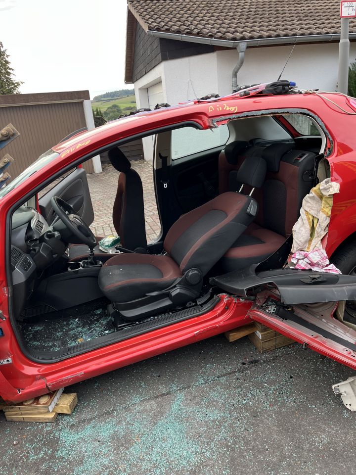 Das Fahrzeug hatte sich unter dem Pflug verkeilt und die Person war im Fußbereich eingeklemmt. In Absprache mit dem ebenfalls anwesenden Rettungsdienst wurde die Entscheidung getroffen eine große Seitenöffnung zu schaffen um den Patienten Achsengerecht aus dem PKW zu retten. Zunächst wurden beide Fahrzeuge und der Pflug mit verschiedenen Hilfsmitteln gesichert bevor mit der eigentlichen Arbeit begonnen werden konnte. Die Fahrertür wurde mit dem Spreizer entfernt. Anschließend konnte die B-Säule und die hintere Blechverkleidung mit der Rettungsschere und der Säbelsäge eingeschnitten und nach unten weggeklappt werden so das eine große Öffnung entstand. Nun war der Weg frei um den Patienten mit einem Spineboard aus den Fahrzeug zu holen.