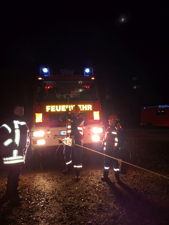 Zu einer Person, die zwischen einem Traktoranhänger und Strohballen eingeklemmt war, wurde die Gruppe 1 um 20:55 Uhr mit dem TLF 16/25 alarmiert. Die eingeklemmte Person wurde vom Angriffstrupp betreut. Der Wassertrupp baute zusammen mit dem Schlauchtrupp den Mehrzweckzug auf und zog hiermit den Traktor weg , um die Person zu befreien. Die befreite Person wurde im Anschluss dem Rettungsdienst übergeben.