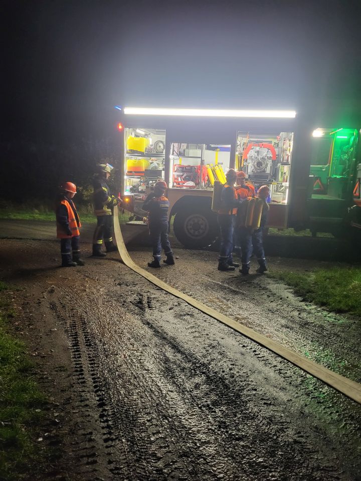 Mit dem TLF 16/25 wurde die Gruppe 3 um 23:36 Uhr am Samstag zu einer unklaren Rauchentwicklung nach Rebsdorf nachalarmiert. Die Gruppe 3 war für die Wasserversorgung zuständig. Zuerst wurden LF 10 und TLF 16/25 mit zwei B-Schläuchen verbunden. Danach kuppelten alle zusammen einen Wassertank mit Saugschläuchen an das TLF 16/25. Als das erledigt war, konnte die Gruppe 3 die anderen Gruppen beim Löschen des Feuers unterstützen. Nachdem das Feuer gelöscht war, wurde alles wieder abgebaut. Gegen kurz nach 1:00 Uhr waren alle zurück auf der Feuerwache.