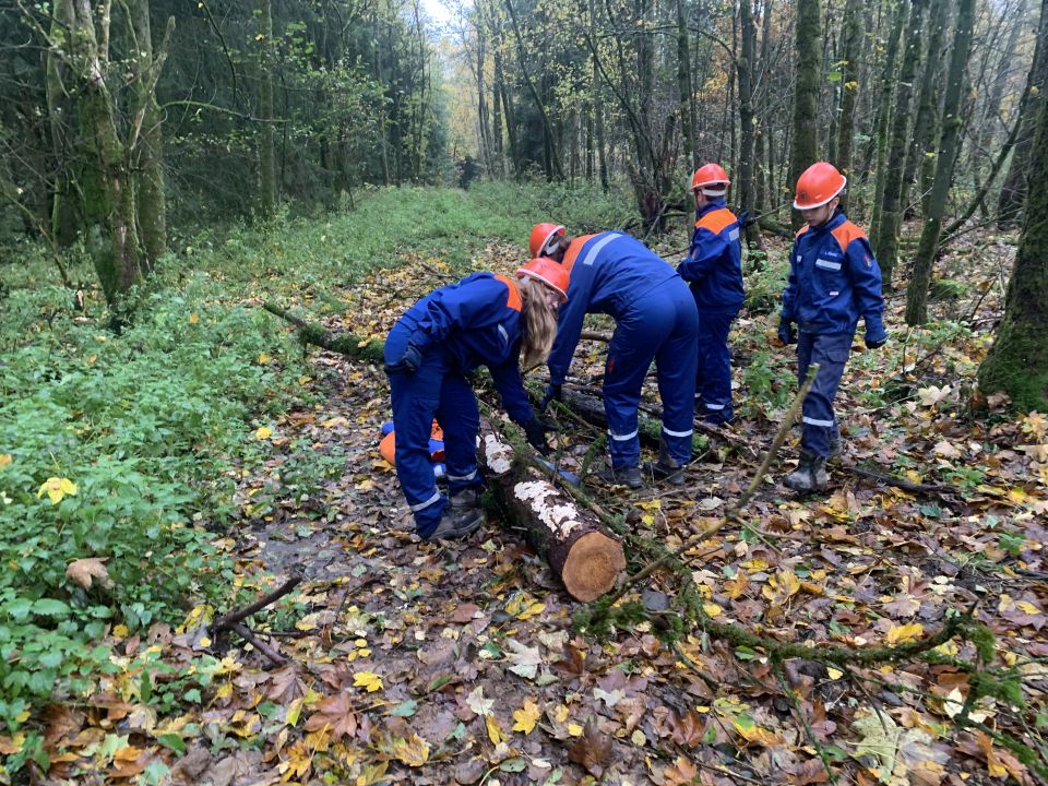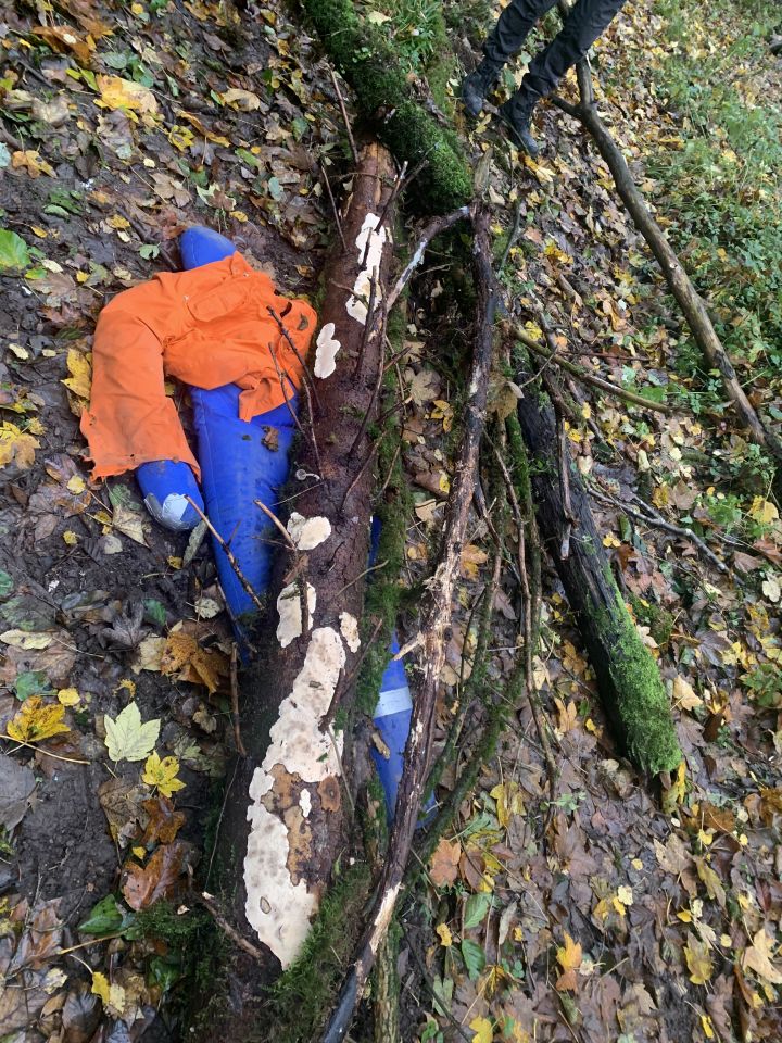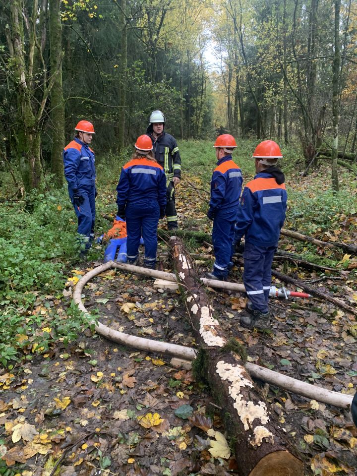 Gruppe 2 wurde um 9:19 Uhr mit dem TLF 16/25 zur Rettung einer Person unter einem Baum gerufen. Beim Eintreffen war der Holzfäller bewusstlos, daher leistete der Schlauchtrupp Erste- Hilfe, während der Wassertrupp Rüstholz besorgte und der Angriffstrupp einen B-Schlauch auslegte. Anschließend sicherten sie den Baumstamm mit dem Rüstholz und verwendeten den B-Schlauch um den Baumstamm mit Druck anzuheben. Daraufhin konnte der Angriffstrupp die Person mit Hilfe des Schlauchtrupps auf eine Trage ziehen und diese zum RTW bringen.